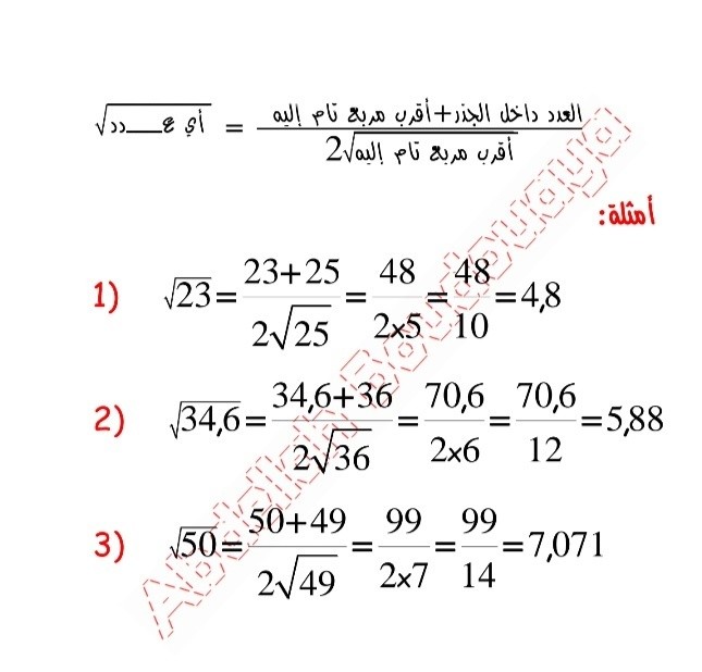 حساب الجذر التربيعي بدون آلة حاسبة صور