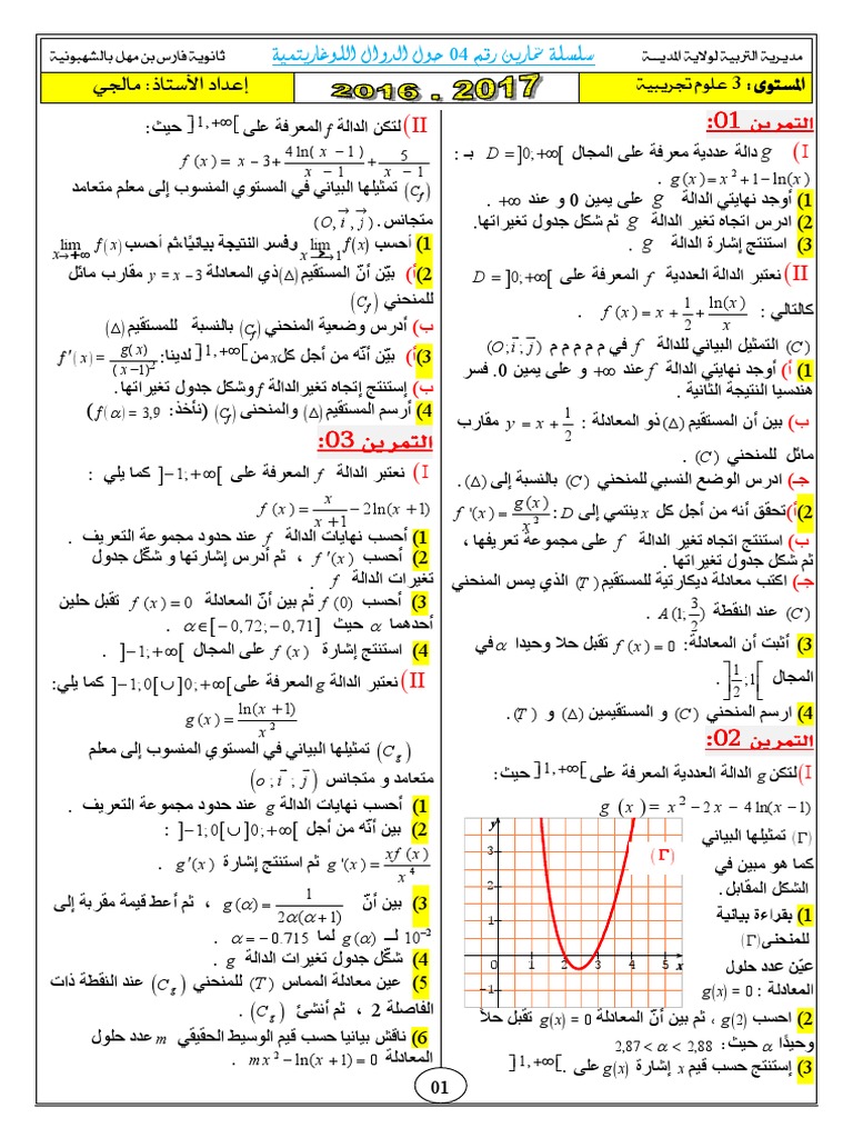 سلسلة الدوال اللوغاريتمية موسم 2016 2017