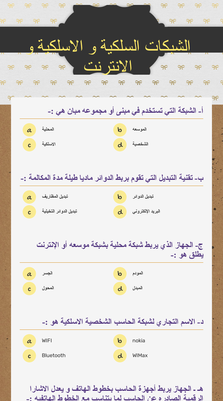الشبكات السلكية و الاسلكية و الانترنت Interactive Worksheet By Han H Wizer Me