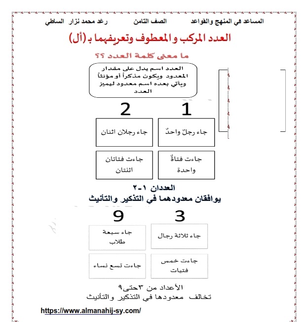 حل وشرح درس العدد المركب والمعطوف وتعريفهما ب أل في اللغة العربية للصف الثامن الفصل الثاني