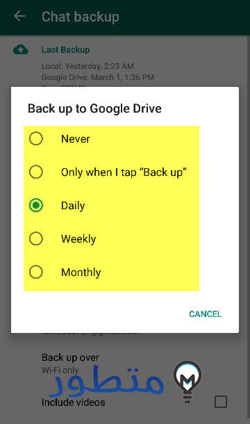 طريقة النسخ الاحتياطي للواتس آب موضوع