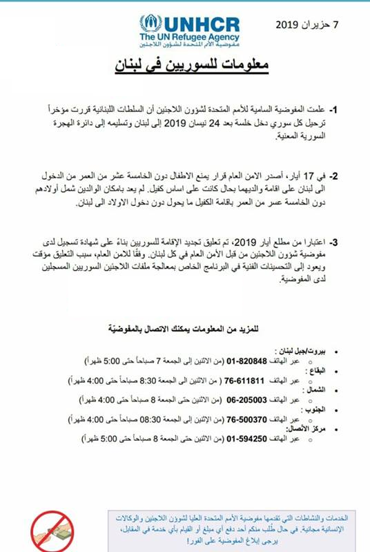 مفوضية اللاجئين تنشر بعض المعلومات الهامة للسوريين فى لبنان بعد قرار الحكومة اللبنانية الخاص بترحيل السوريين