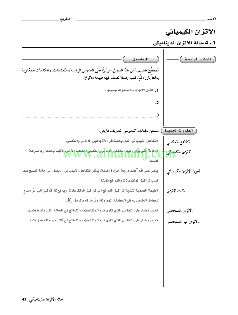 تعابير الاتزان المتجانس نوح العواد حالة الاتزان الديناميكي كيمياء3 ثالث ثانوي المنهج السعودي