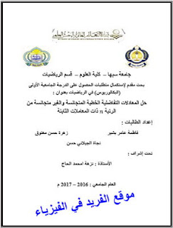 بحث حول حل المعادلات التفاضلية الخطية المتجانسة باستخدام المتسلسلات Pdf طريقة فروبنيوس مكتبة الفريد الإلكترونية