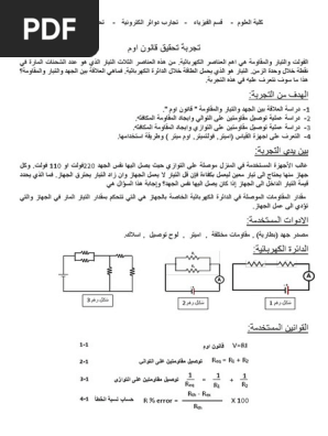 تجربة تحقيق قانون اوم Electronics Pdf