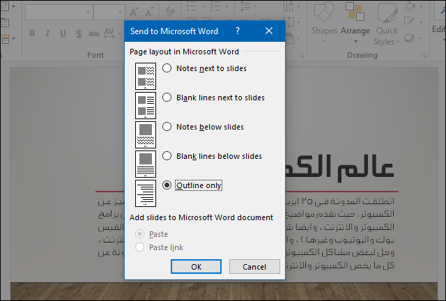 تحويل عرض بوربوينت الى مستند وورد وإستخراج النصوص منه بدون برامج