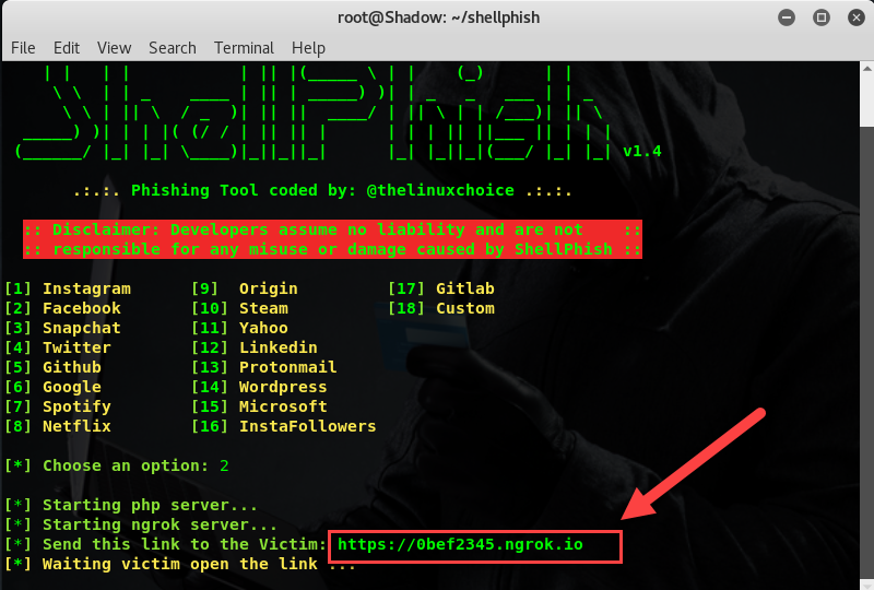 سكربت تهكير حسابات انستقرام والفيس بوك وتويتر والسناب شات بدون فتح بورتات Shellphish V1 3 روهاك