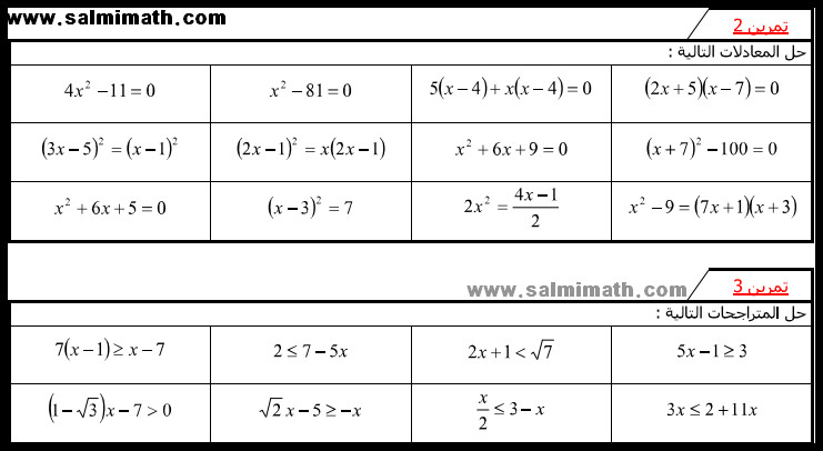 سلسلة تمارين وحلول درس المعادلات و المتراجحات الثالثة اعدادي Pdf عالم الرياضيات