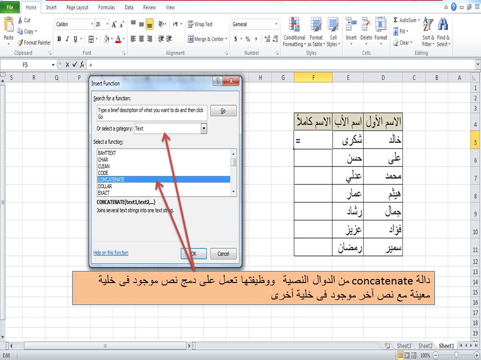 دمج الأعمدة والخلايا باستخدام دالة Concatenate فى الاكسل Excel مدرسة الويب Web School