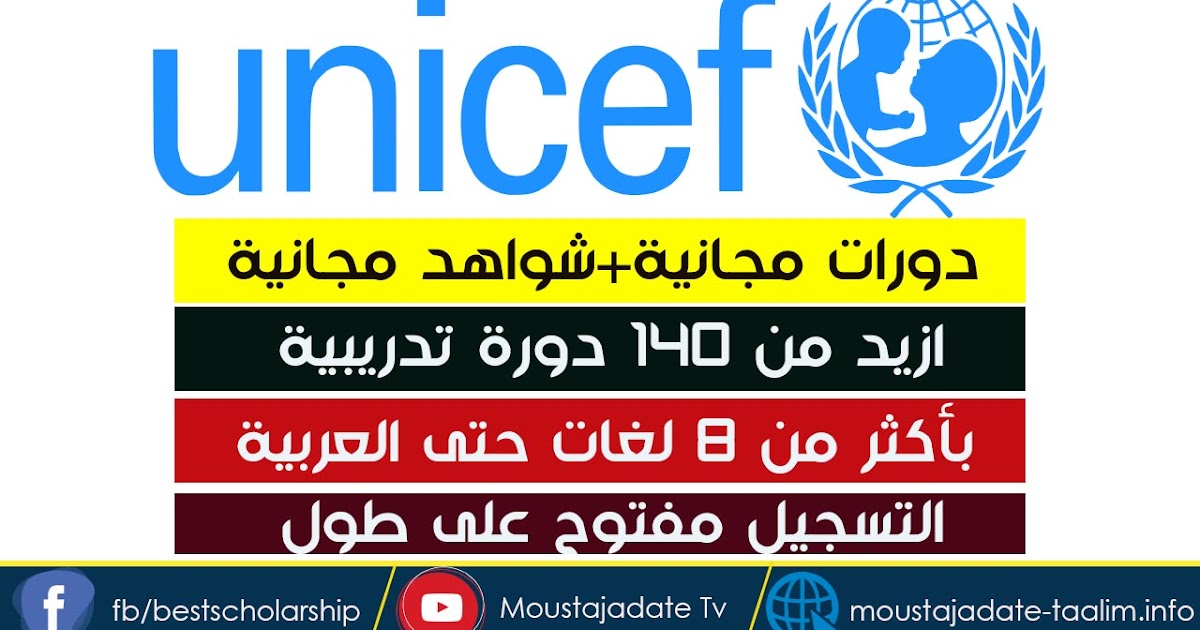 دورات اليونيسف المجانية على الإنترنت 2020 مع شهادة مجانية 140 دورة تدريبية بأكثر من 8 لغات