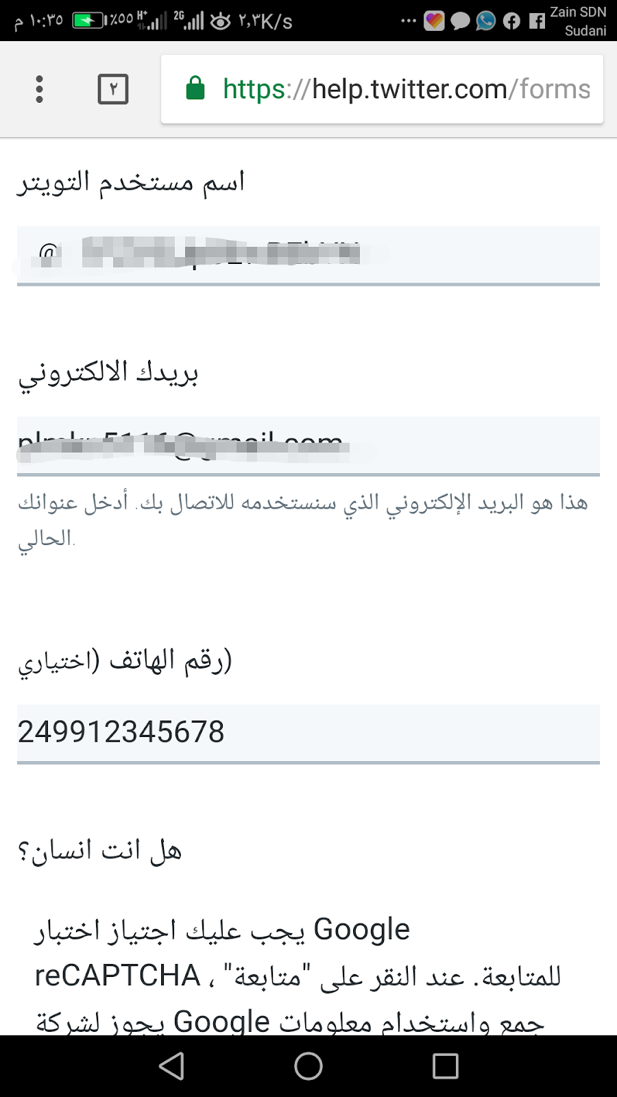 مشكلة تويتر رقم الهاتف مطلوب القيصر1 للمعلوميات
