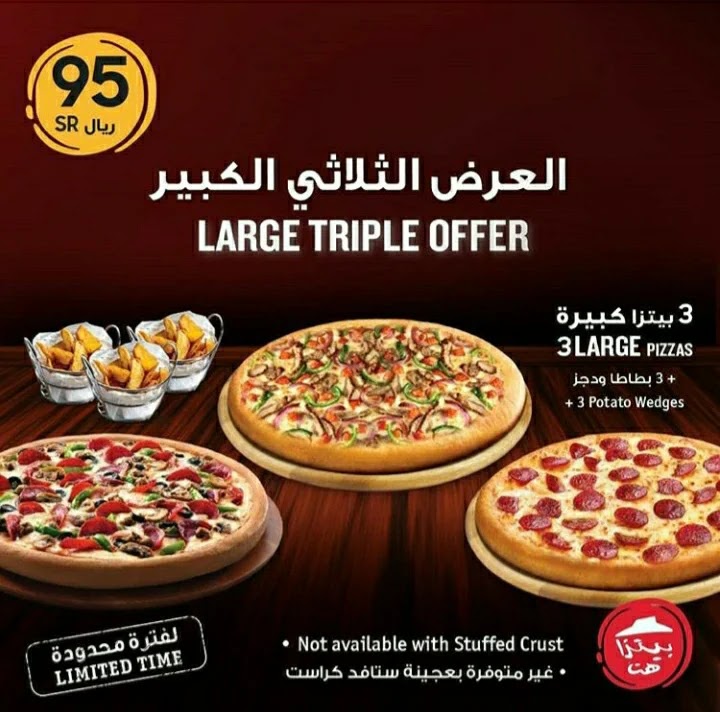 عرض بيتزاهت السعودية الاثنين 17 فبراير 2020 العرض الثلاثي بـ 89 ريال عروض اليوم