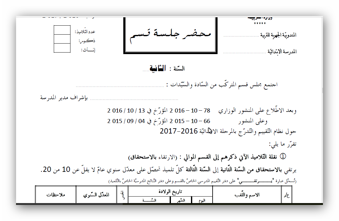 محاضر جلسات الأقسام وثائق مديري المدارس الإبتدائية موارد المعلم