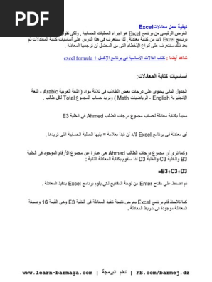 شرح دوال Excel بالعربي Pdf معلومة ثقافية