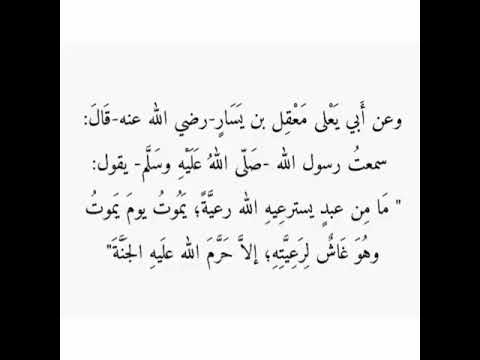 ما من عبد يسترعيه الله رعية يموت وهو غاش لرعيته الا حرم الله عليه الجنة Youtube