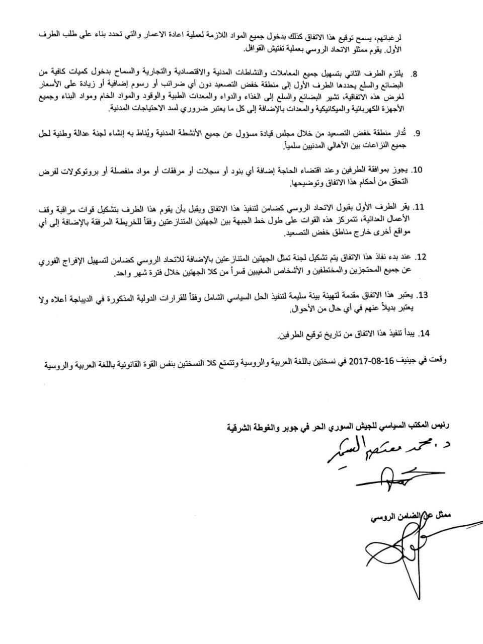 Fsa News On Twitter Syria Ll Eastghouta Photos Of The East Ghouta Jobar Ceasefire Agreement Signed By Fsa Russia Damascus