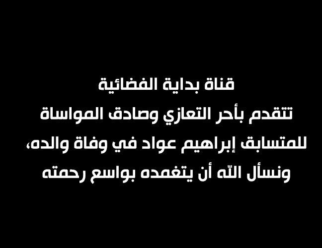 بداية On Twitter قناة بداية الفضائية تتقدم بأحر التعازي وصادق المواساة للمتسابق ابراهيم عواد في وفاة والده ونسأل الله أن يتغمده بواسع رحمته حياتك56 Https T Co Dlyclym0ar