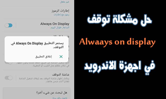 حل مشكلة يستمر التطبيق Always On Display في التوقف